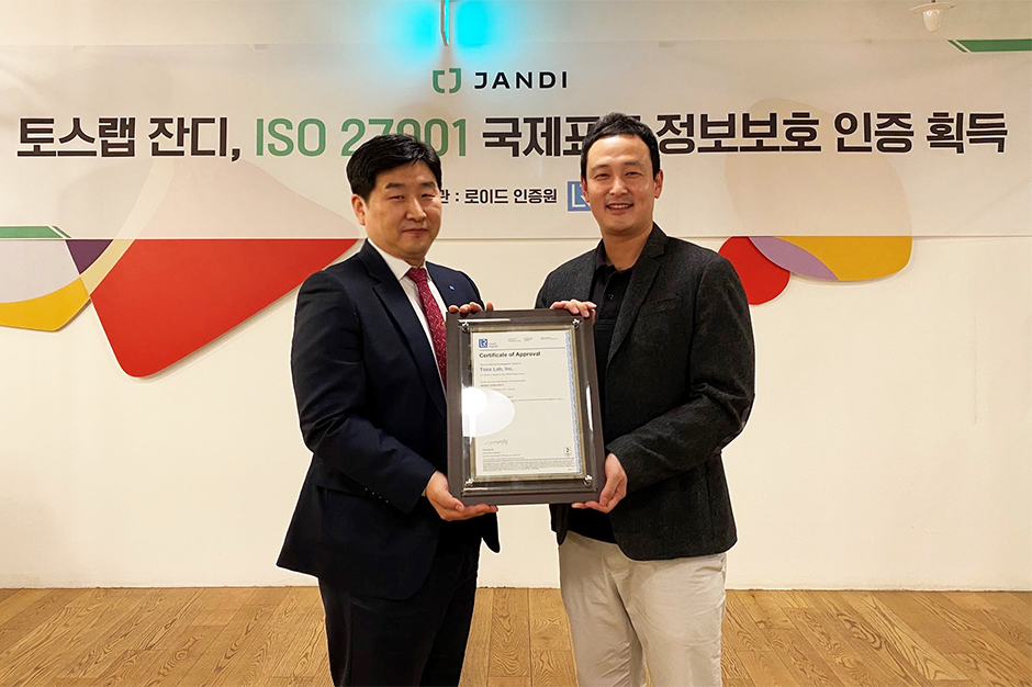업무용 협업툴 잔디(JANDI)를 서비스하는 토스랩이 정보보안경영시스템 ISO/IEC 27001:2013 인증을 획득했습니다.